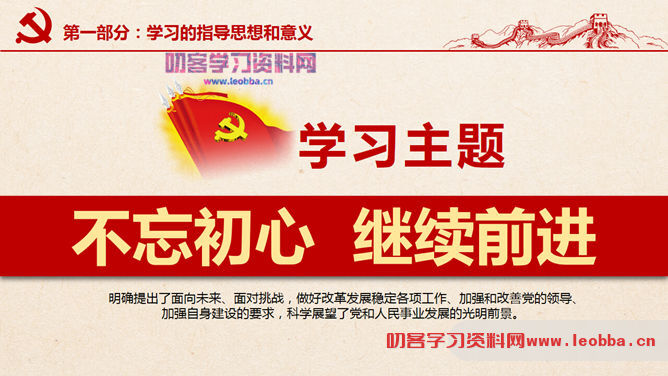 不忘初心继续前进PPT模板。一套党建工作幻灯片模板,大气精美有用的规划,适合制造党课课件。