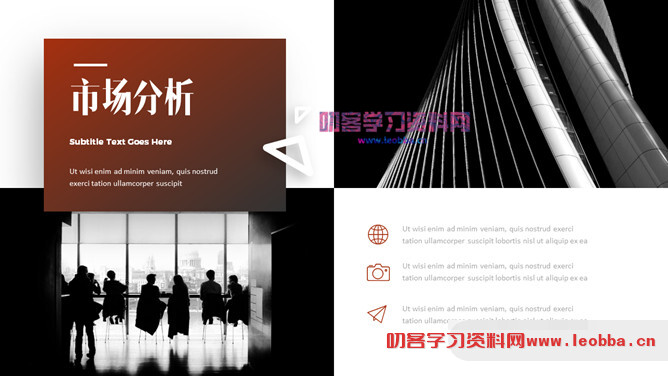 欧美范杂志风图文排版PPT模板。一套精美杂志风幻灯片模板,时尚欧美范设计,以图文排版页面为主。
