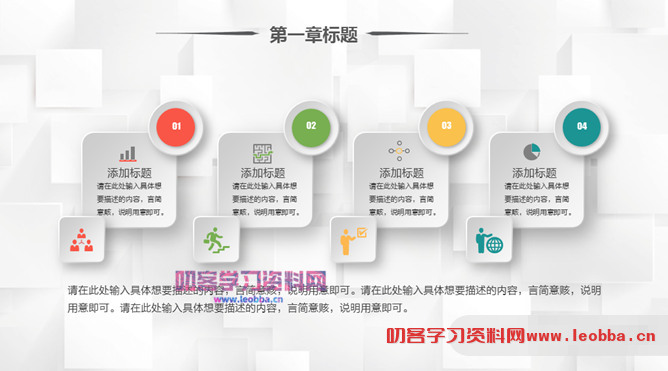 多彩工作总结方案PPT模板。一套精美动态幻灯片模板,微立体视觉效果,多彩配色,适合工作总结方案运用。