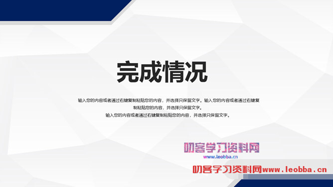 精约蓝色条纹工作汇报PPT模板。一套工作总结汇报幻灯片模板,精约稳重大气,深蓝条纹装饰,低面多边形布景。
