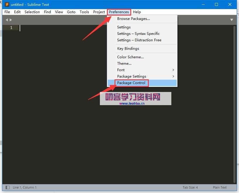 3.然后点击“Preferences”菜单中的“Package Control”选项,如图所示。