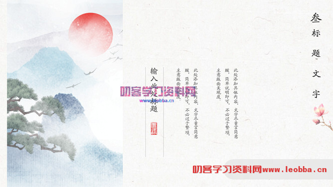 简约波涛红日国潮风PPT模板。一套简约中国风模板,新中式国潮风格规划,波涛、红日等元素背景。